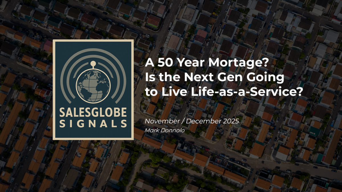 SalesGlobe Signals is about seeing a bigger, macro view on growth and taking actions that will help you reach your growth aspirations. This month let’s look at some Signals on the housing market that may be impacting your customers – stretched affordability, the rising age of first-time buyers, and the potential for a 50-year mortgage. Underneath it all is our bigger question: If the next generation of buyers never really own in the traditional equity sense, do they start to live life-as-a-service and, from the perspective of your business, how can you help them as customers to get to a better place?
