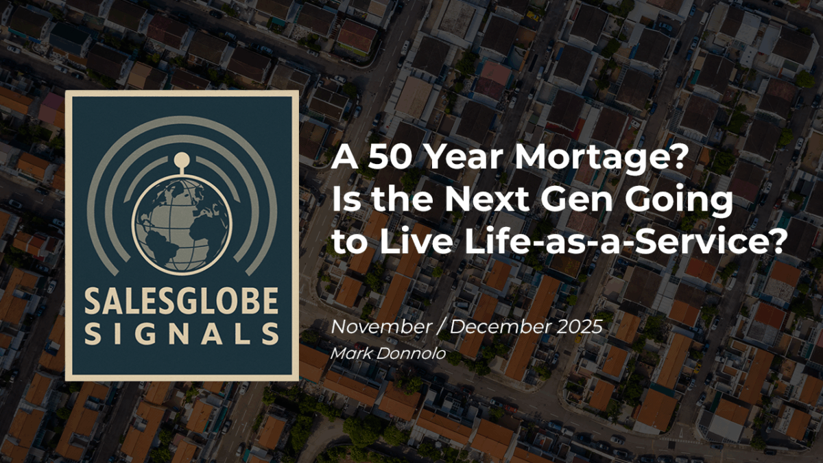 SalesGlobe Signals is about seeing a bigger, macro view on growth and taking actions that will help you reach your growth aspirations. This month let’s look at some Signals on the housing market that may be impacting your customers – stretched affordability, the rising age of first-time buyers, and the potential for a 50-year mortgage. Underneath it all is our bigger question: If the next generation of buyers never really own in the traditional equity sense, do they start to live life-as-a-service and, from the perspective of your business, how can you help them as customers to get to a better place?
